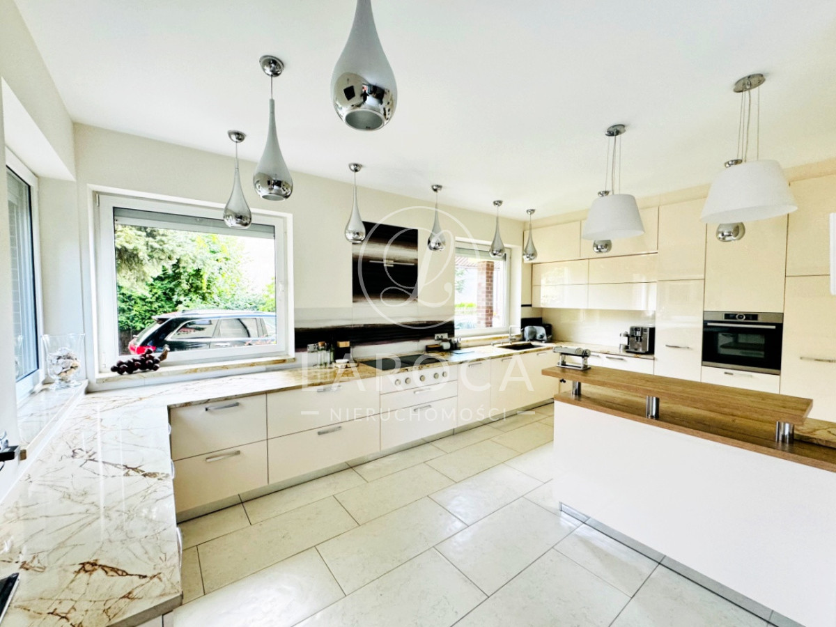 - wysokiej klasy meble kuchenne zaprojektowane i wykonane na wymiar, płyta ceramiczna BORA z pochłaniaczem zapachów w blacie,