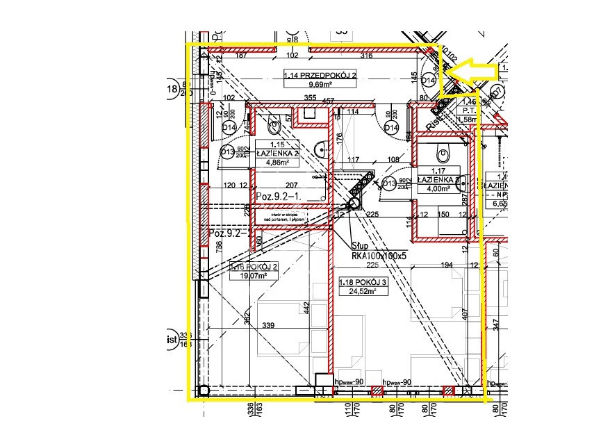Podana powierzchnia może ulec pomniejszeniu lub zwiększeniu - na tym etapie istnieje możliwość łączenia pomieszczeń.