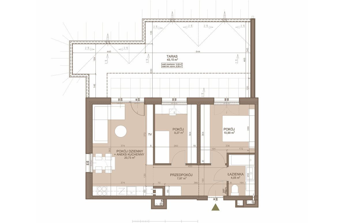 - salon z aneksem kuchennym