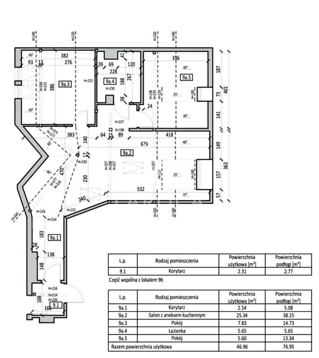 Cechy mieszkania:Mieszkanie posiada 76,95 m² powierzchni po podłodze ze skosami, przy czym