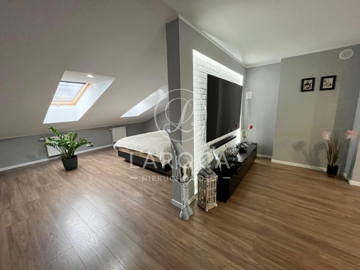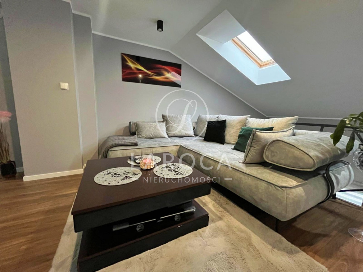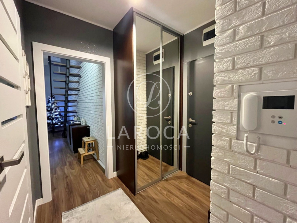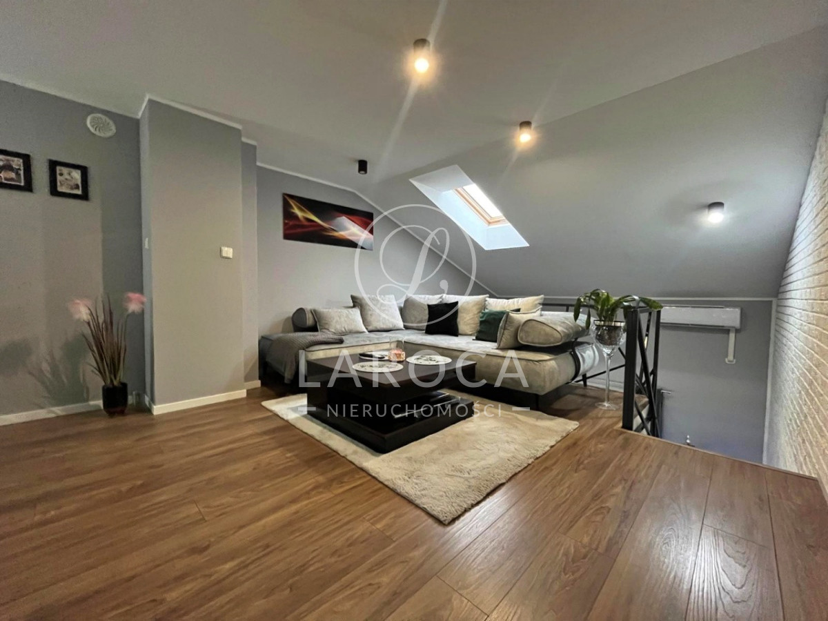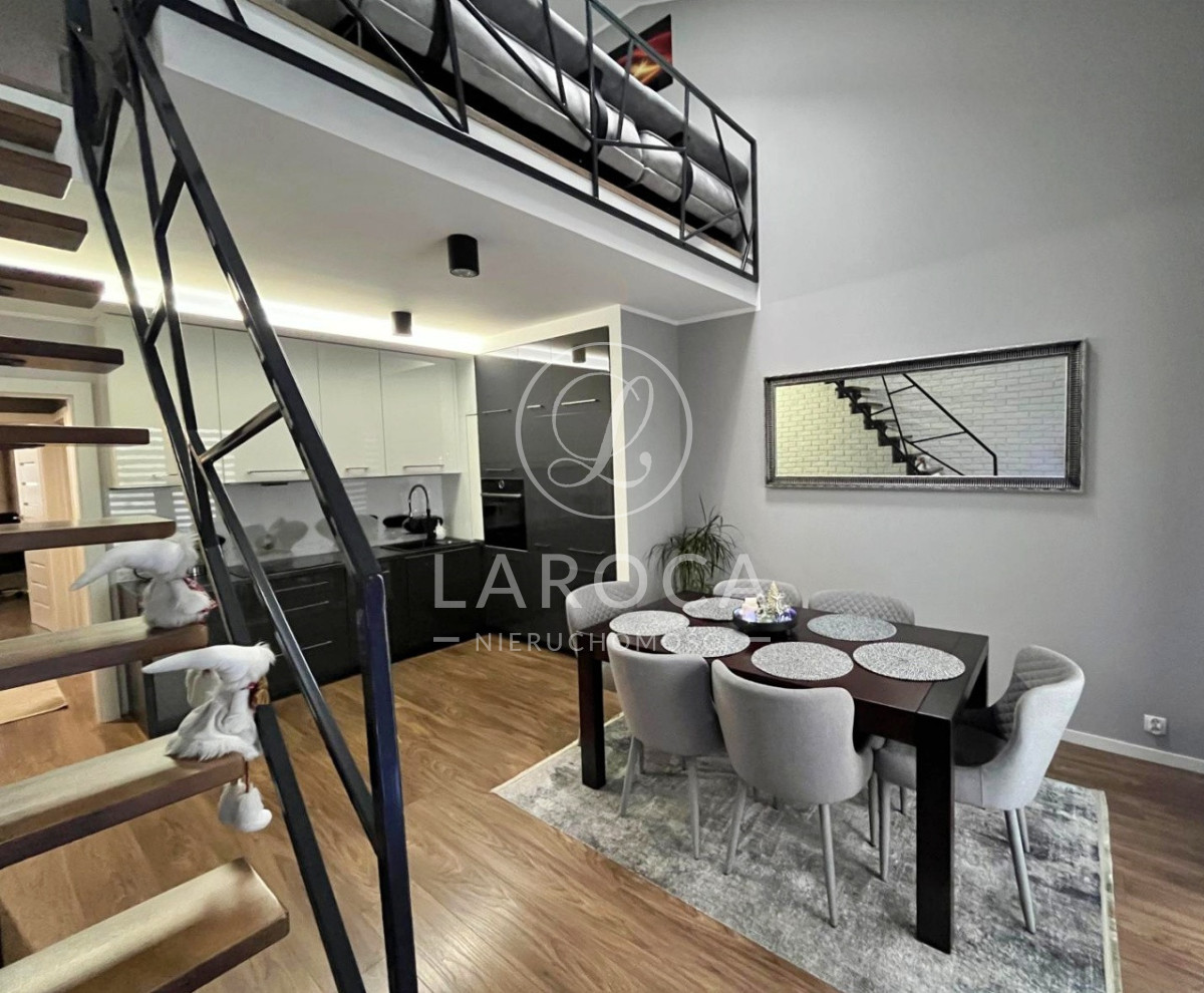 Mieszkanie składa się z:Poziom pierwszy:- przestronnego salonu z aneksem kuchennym oraz wyjściem na balkon