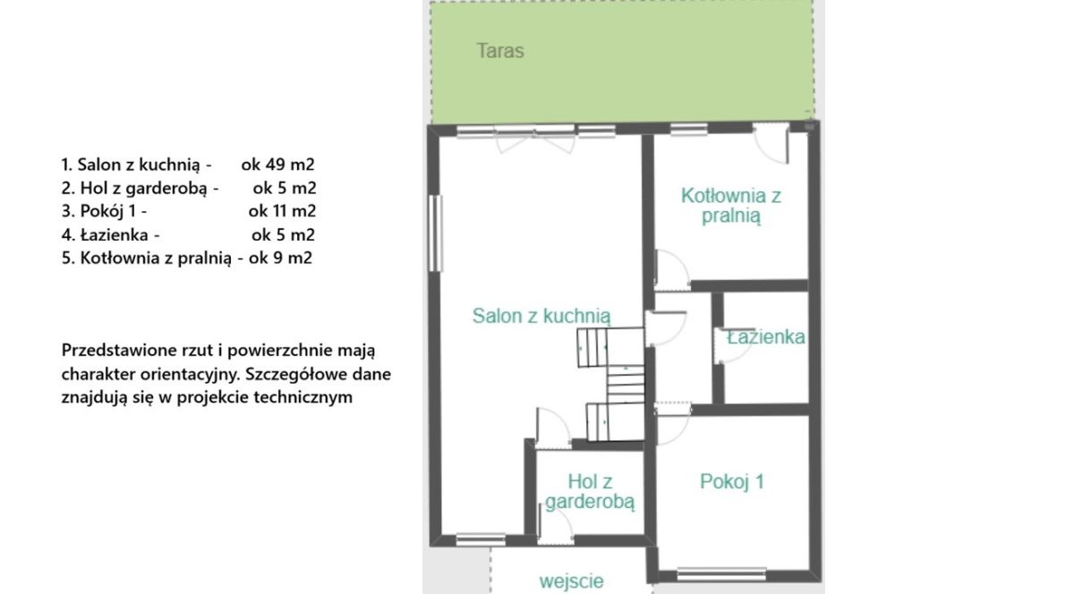 - kotłownia gazowa z pralnią i wyjściem na ogród