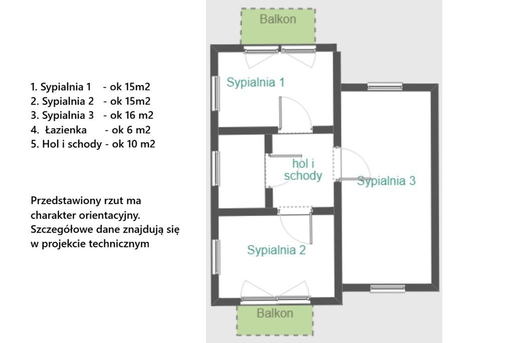 - sypialnia nr 3 z możliwością podziału na dwie mniejsze