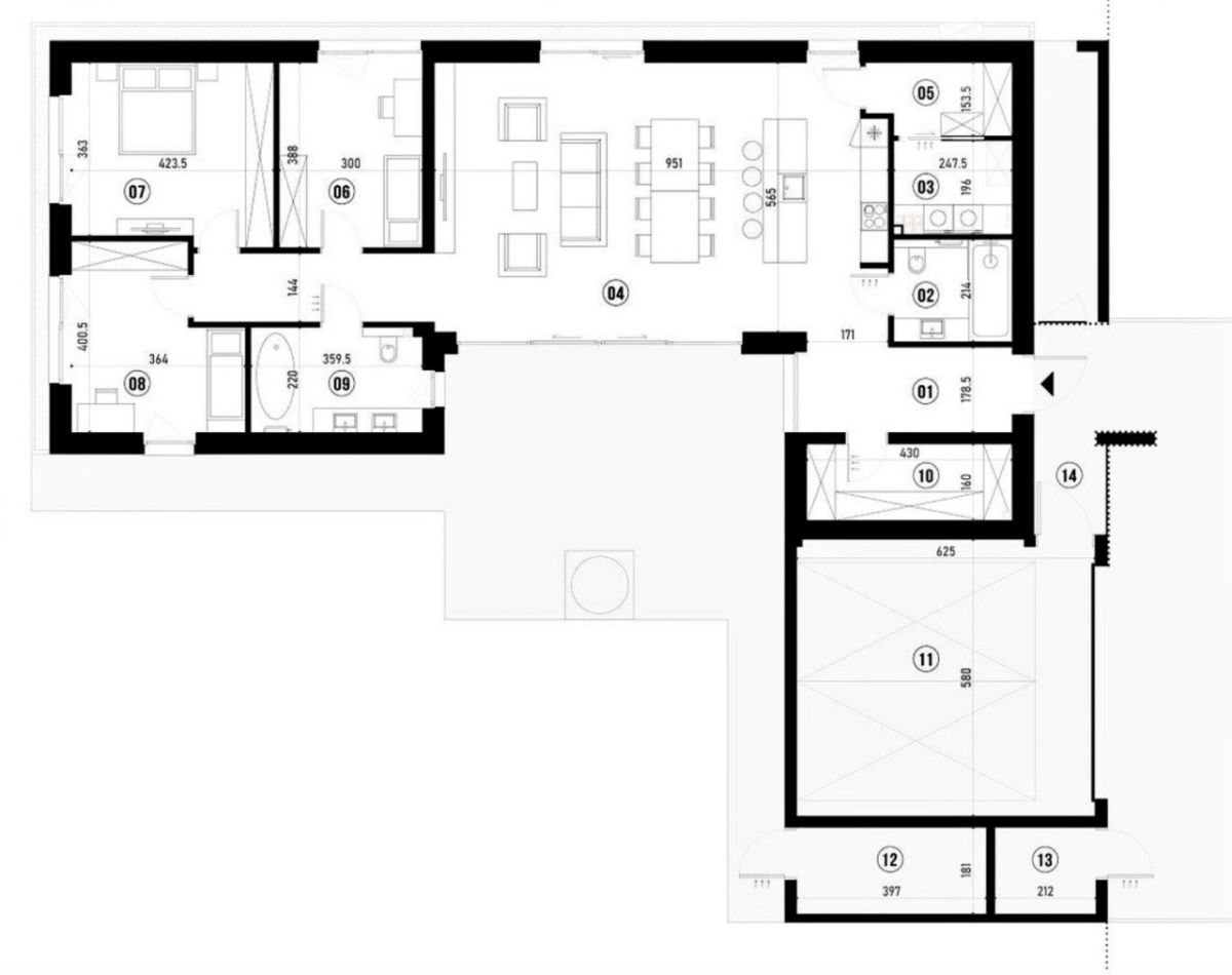 - przestronny salon z jadalnią i otwartą kuchnią,