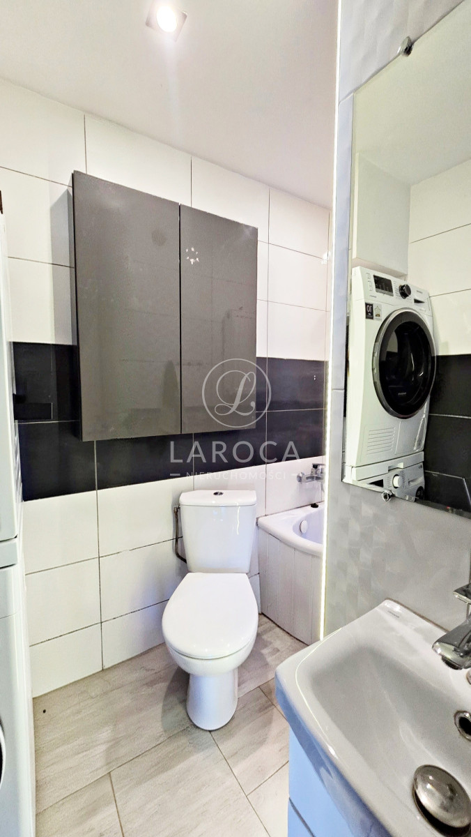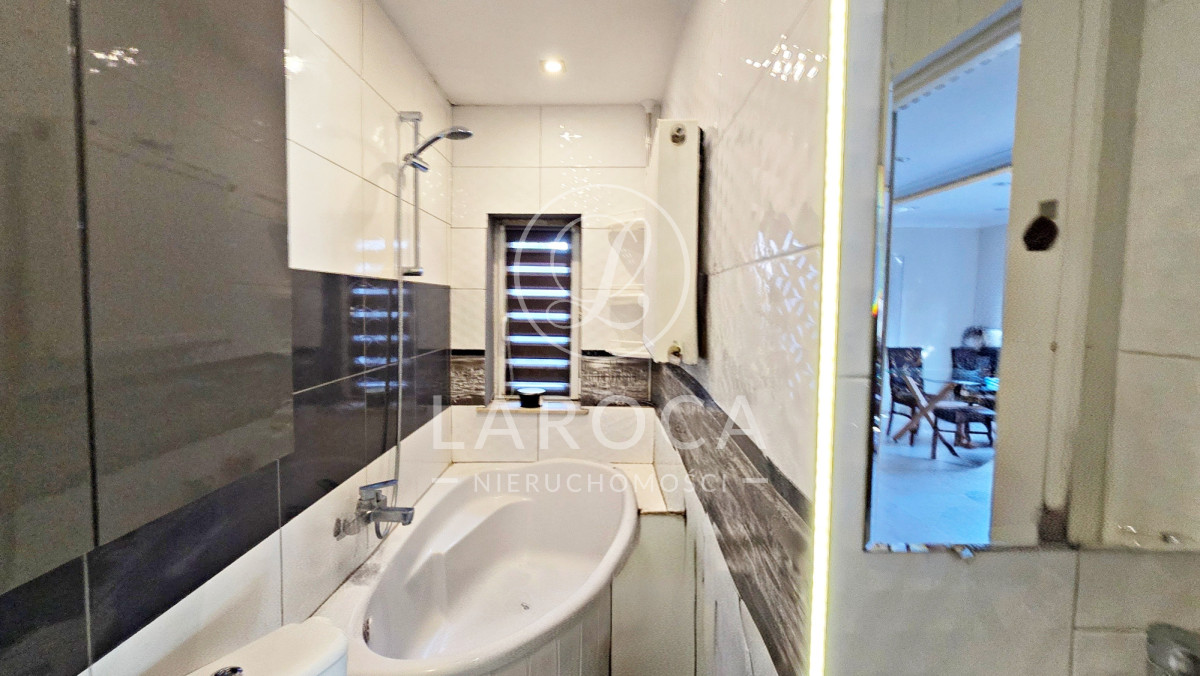 - łazienka z oknem , wanną oraz miejscem na pralkę i suszarkę