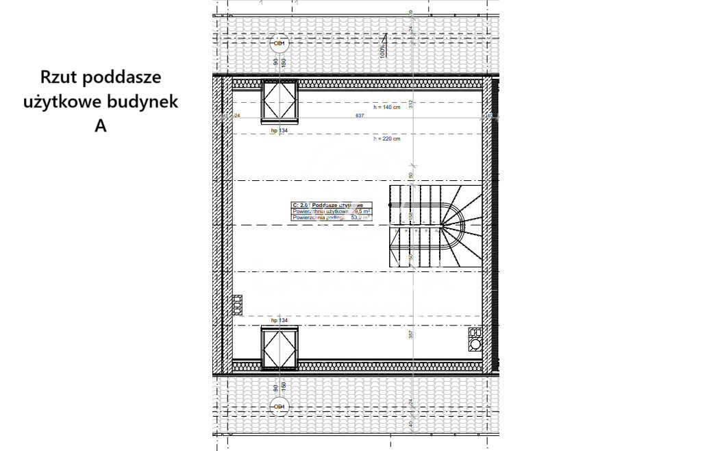* otwarta przestrzeń użytkowa z oknami typu velux ( możliwość wydzielenia 2 sypialni)