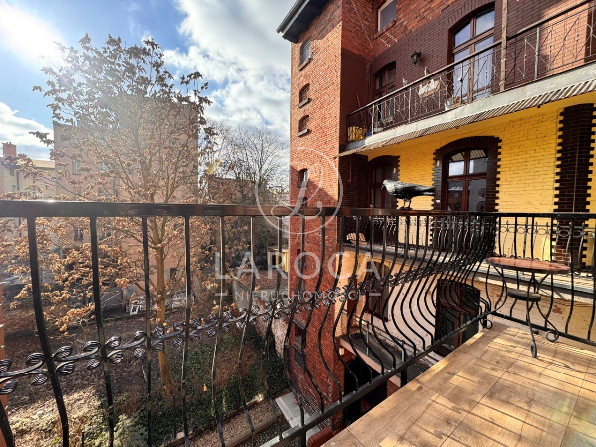 - balkon z wystawą w kierunku zachodnim i widokiem na zielone podwórze