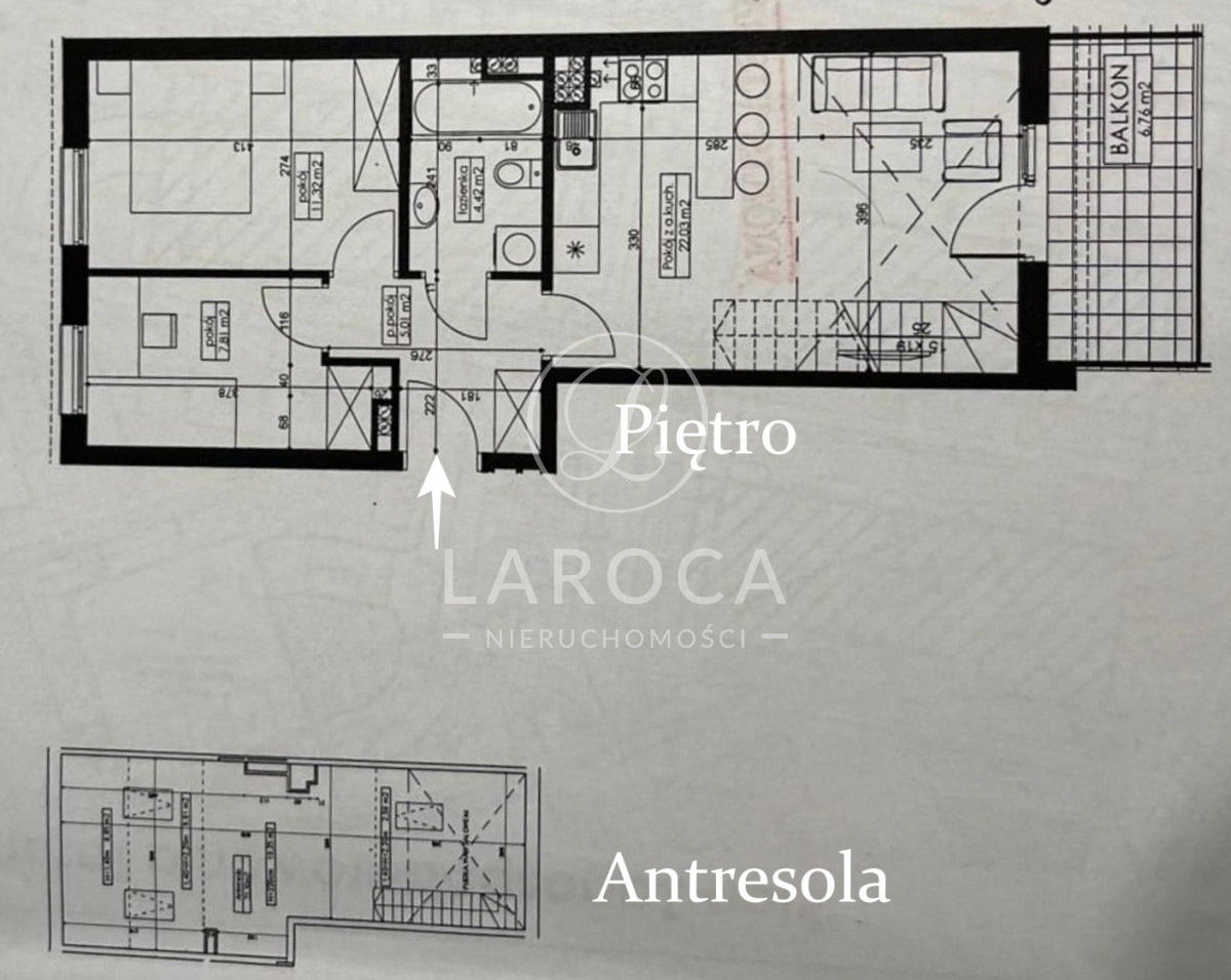 Mieszkanie składa się z:Poziom pierwszy:- przestronnego salonu z aneksem kuchennym oraz wyjściem na balkon